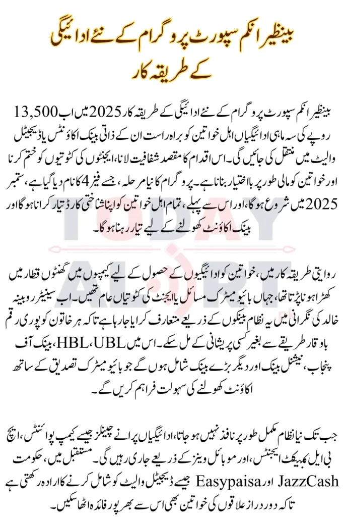 BISP 8171 New Payment Method 2025 is a groundbreaking initiative by the Government of Pakistan to improve transparency and ease in social welfare disbursement. This time, eligible women will receive their quarterly payments of Rs. 13,500 directly into personal bank accounts and digital wallets, eliminating the need to stand in long queues or deal with agent deductions.