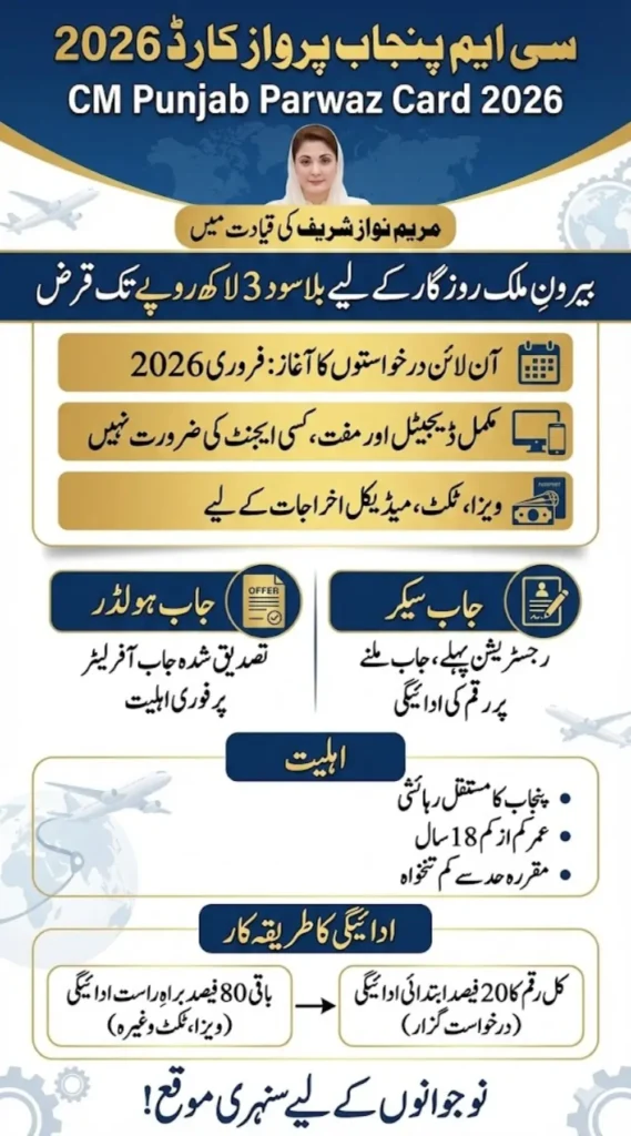 For thousands of young Pakistanis, going abroad for work is a dream that stops at visa fees, tickets, and medical costs. In a major and much-needed move, the Punjab government has launched Parwaaz Card Punjab 2026, a scheme that directly targets this problem. This initiative is part of the broader skilled youth vision led by Maryam Nawaz Sharif, focusing on dignity, opportunity, and self-reliance.