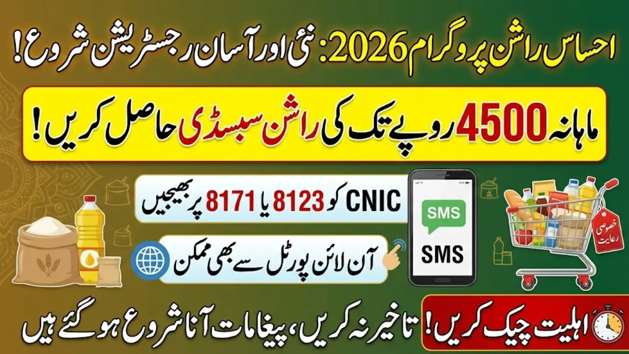 Ehsaas Rashan Program Online Registration 2026 has been officially updated with a new, faster method to help low-income families fight rising food prices. Eligible households can now check and register by simply sending their CNIC to 8123 or 8171, or through the official online portal, without long queues.